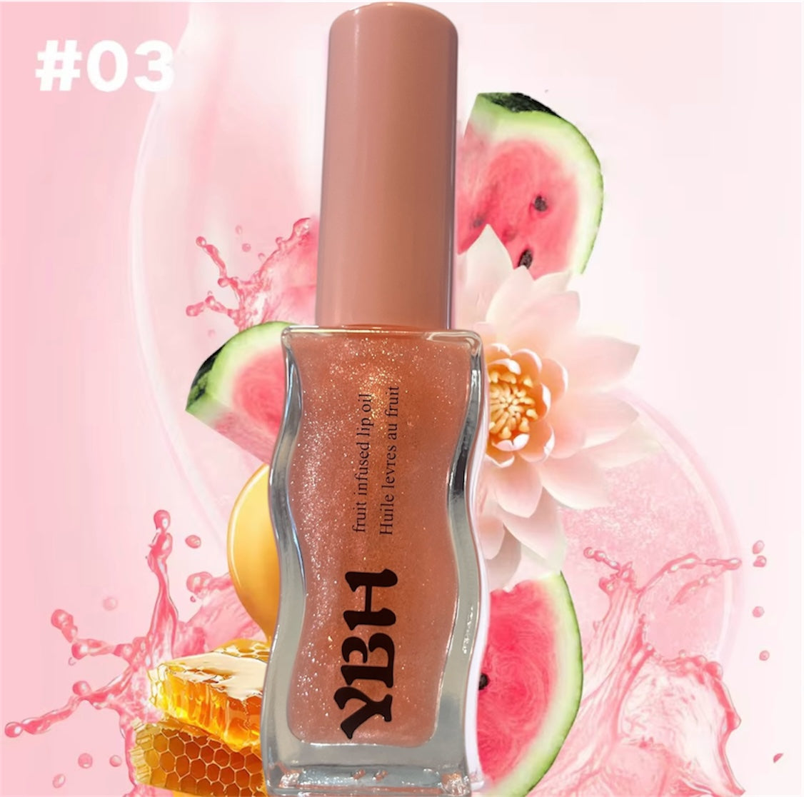 High shine vegan lip oil prevent from cracking lips with a non sticky formula and other beneficial ingredients that nourish and hydrate lips.
